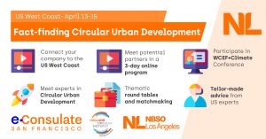 The Netherlands and the United States have high ambitions when it comes to the Paris Climate Agreement. Developing a circular economy is key in reaching these goals. As construction and urban planning contribute heavily to CO2 emissions, creating a circular city will have a major impact. The participating Dutch companies all have smart and creative solutions for living a circular life: from recycling construction materials to waste water treatment. The mission connects these companies to potential partners on the West Coast.