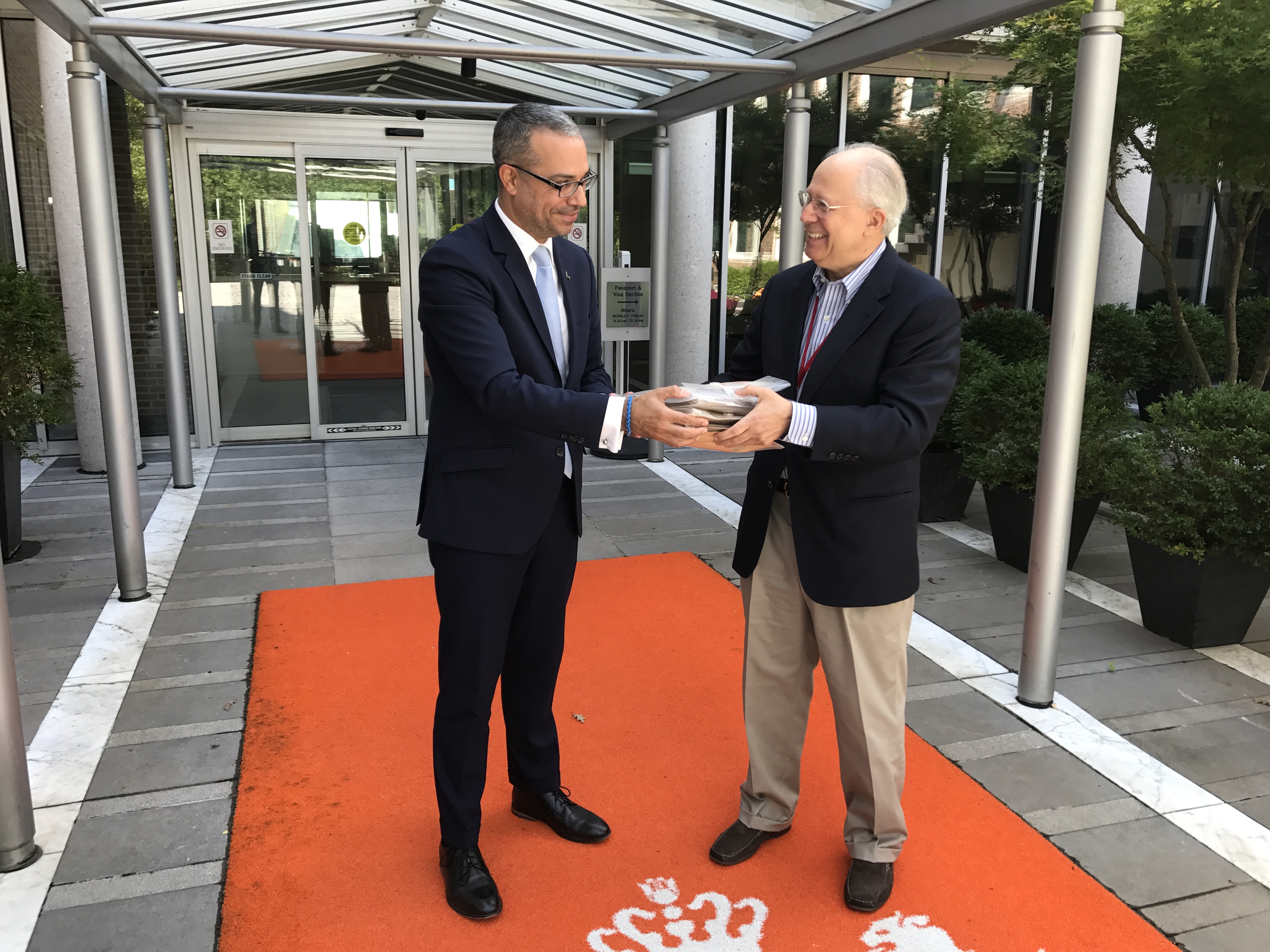 George Maduro’s nephew, George Maduro Alvarez-Correa, visited the embassy this week to present his late uncle’s documents to Curaçao Minister Plenipotentiary Xavier Prens.