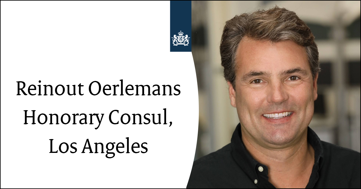 LOS ANGELES – (March 17, 2022) – The Kingdom of the Netherlands has appointed Mr. Reinout Oerlemans – chairman and chief creator officer of media company 3BMG – the new honorary consul in Los Angeles. He will represent the Kingdom of the Netherlands in official capacities, connecting Dutch and American businesses and strengthening the deep economic ties and friendship between the two countries even further. Oerlemans succeeds architect Jan van Tilburg, who has been honorary consul for 12 years.